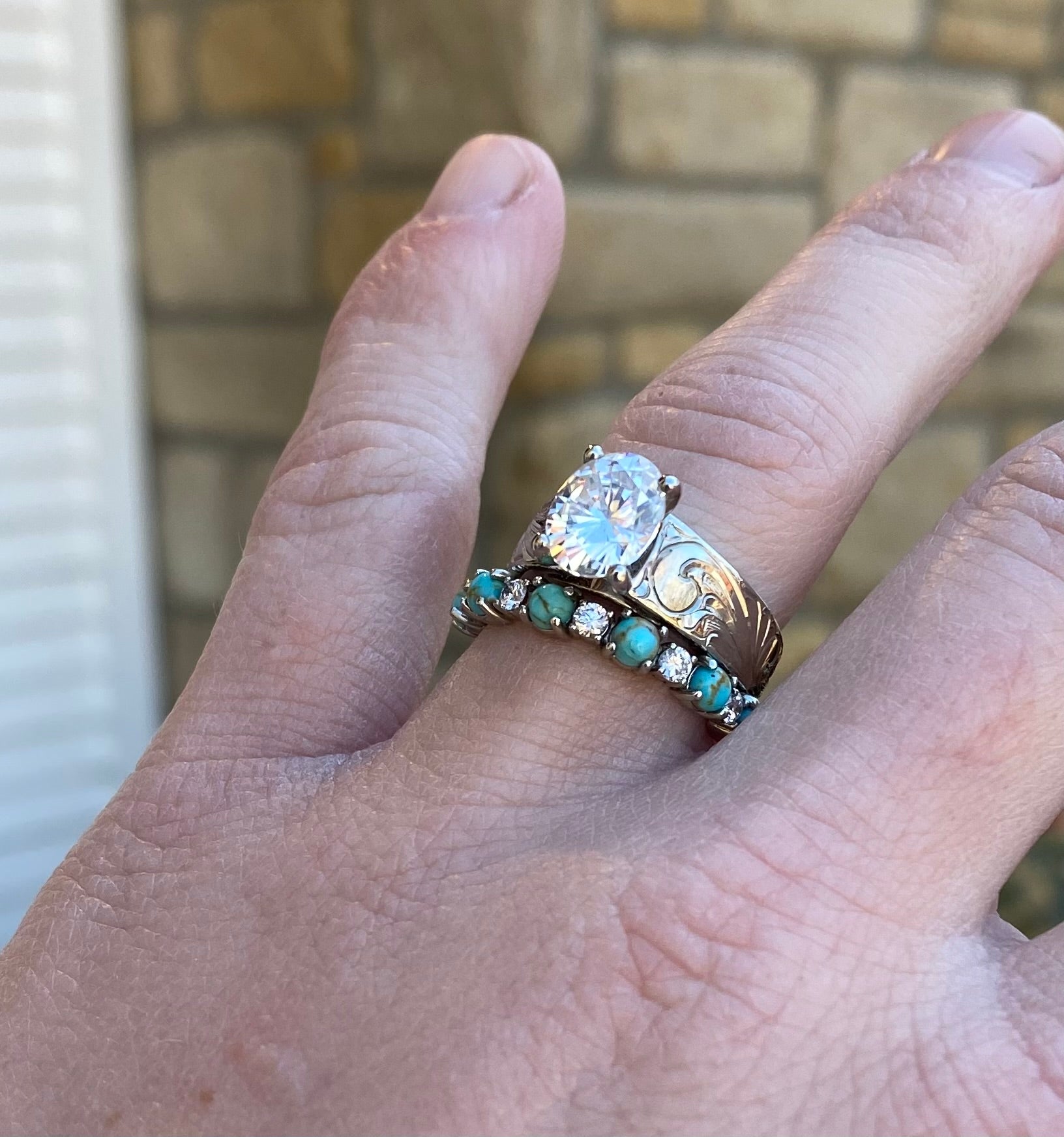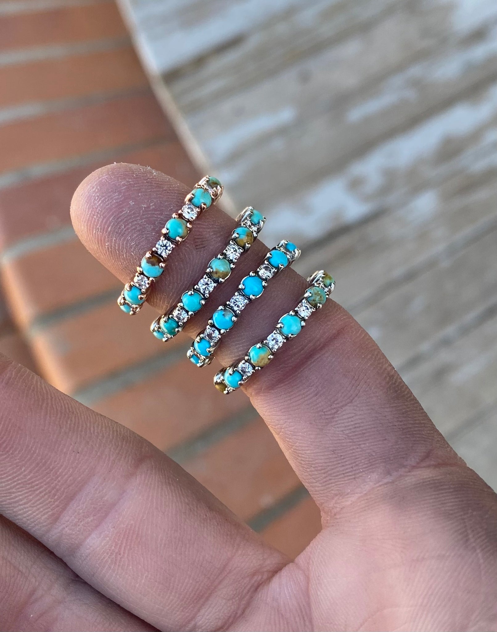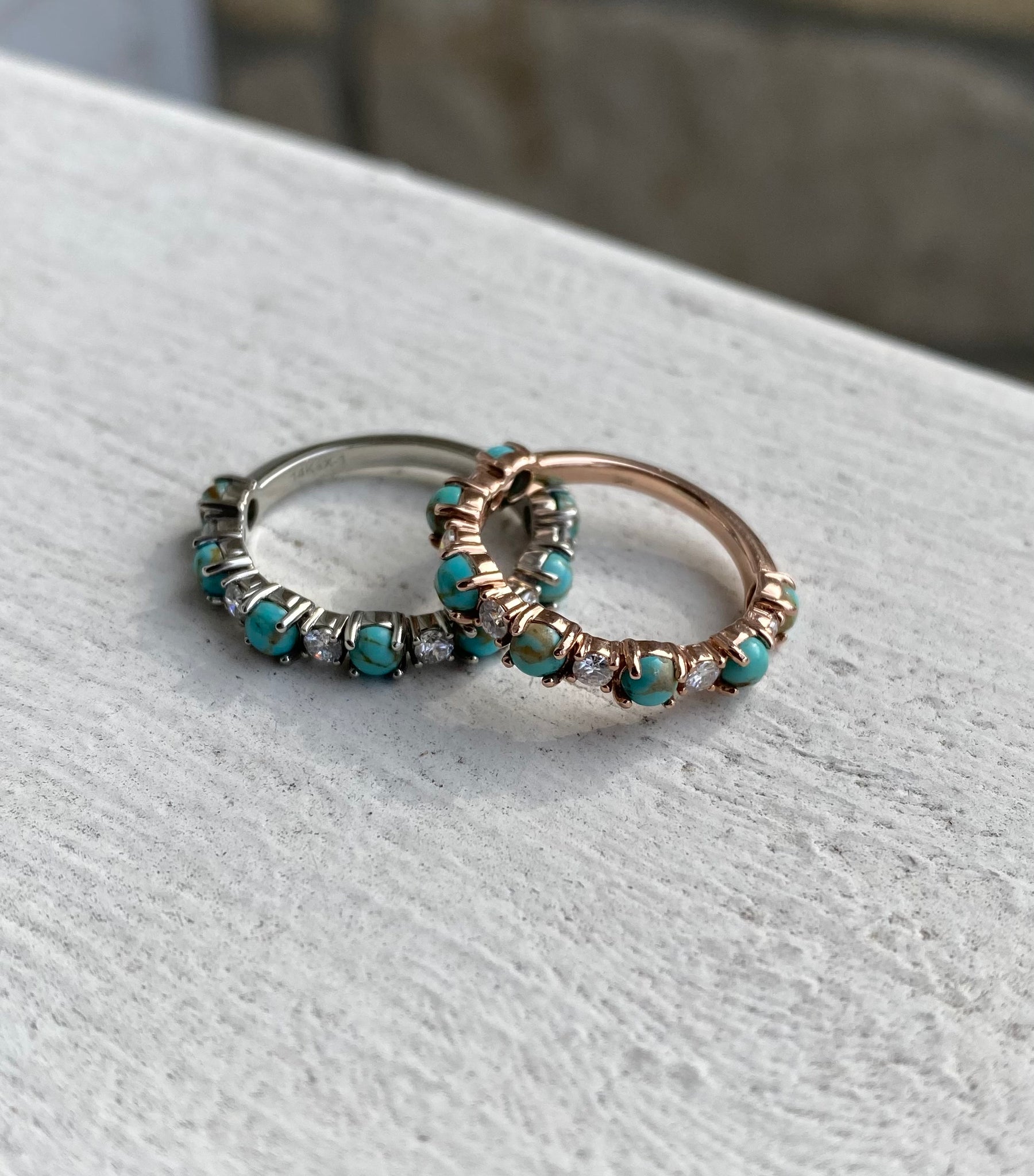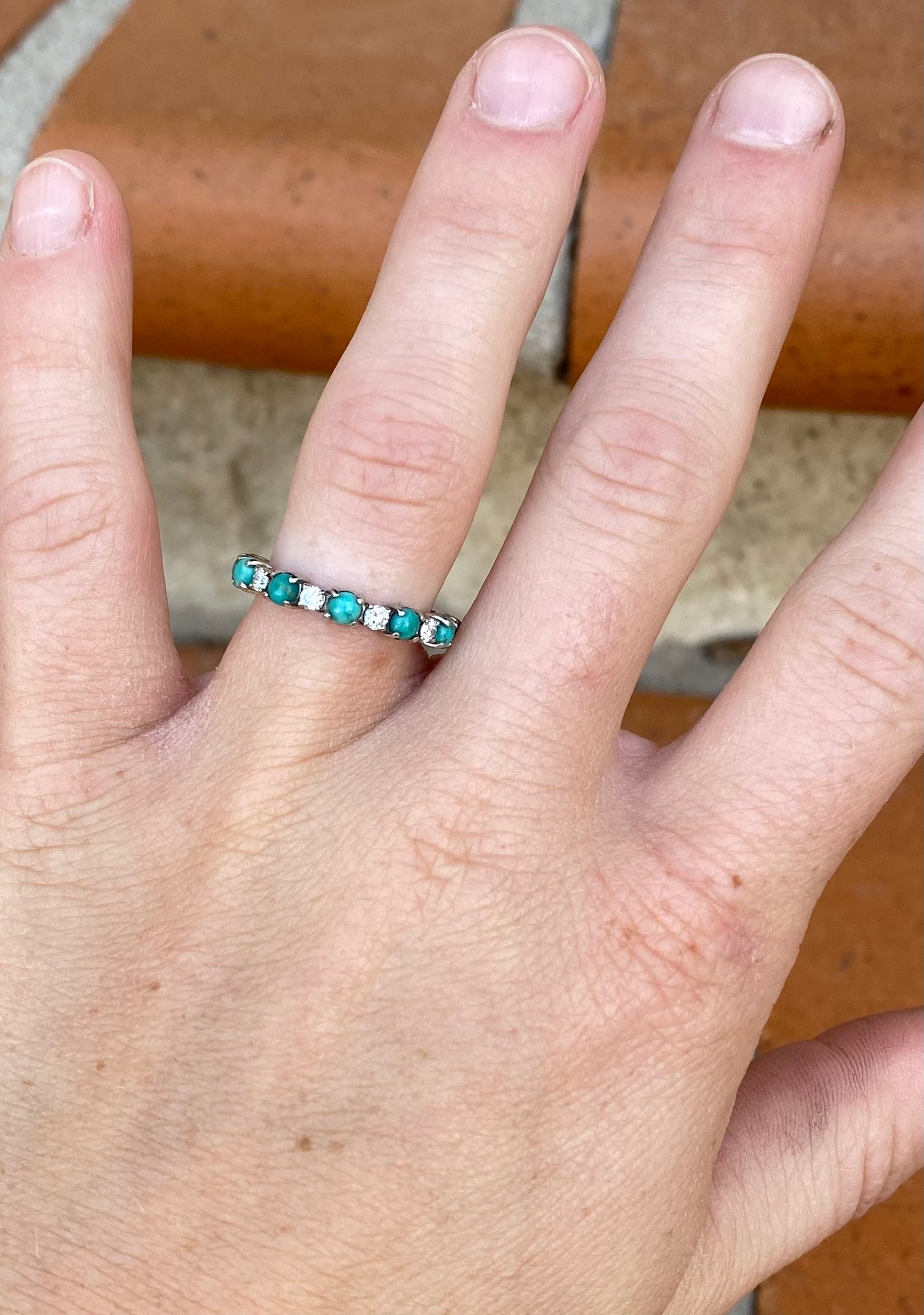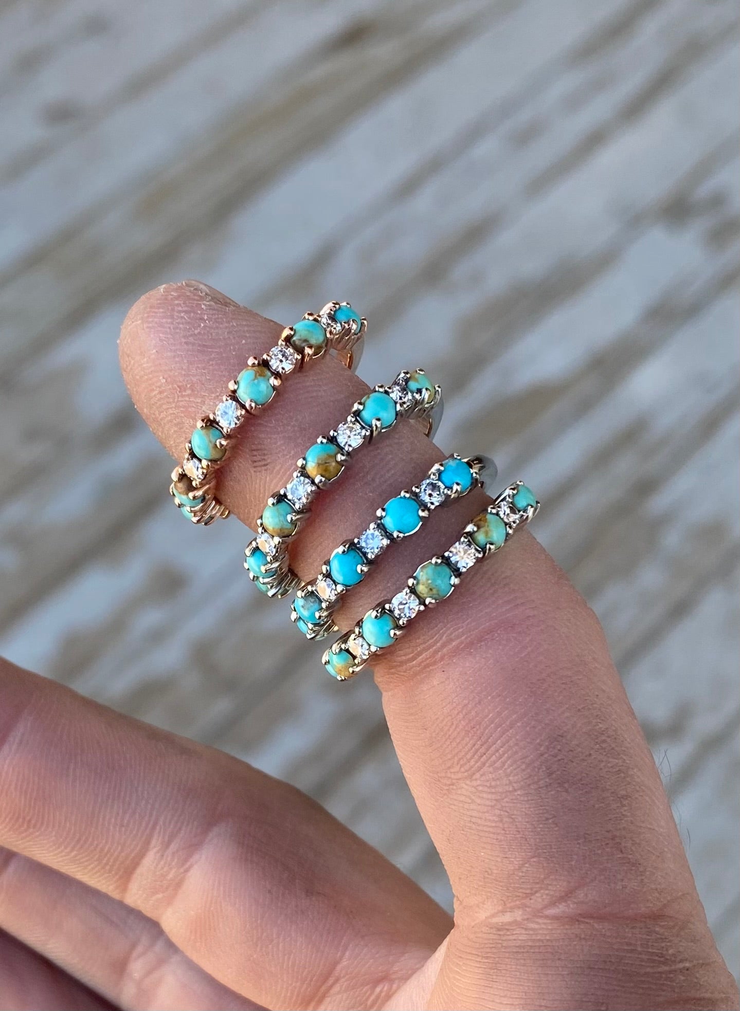 Listing is for a CUSTOM order, customize your way in your desired material and size! 14k gold prong style band with alternating sized turquoise and diamond stones (diamonds equivalate to about 1/3CTW). Please message me with any questions before placing the order. Custom items are non-refundable. Orders are final so please be sure of your selections before placing the order.